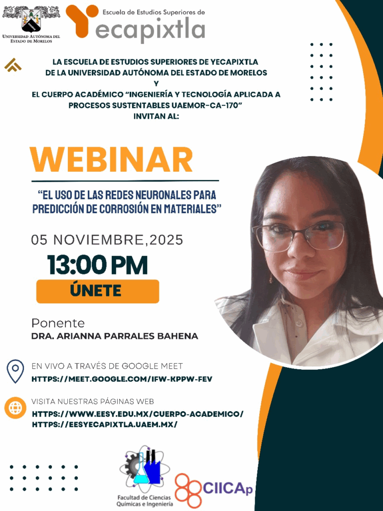 La Escuela de Estudios Superiores de Yecapixtla de la UAEM y el cuerpo académico «Ingeniería y tecnología aplicada procesos sustentables UAEMOR-CA-170» invitan al webinar https://meet.google.com/ifw-kppw-fev